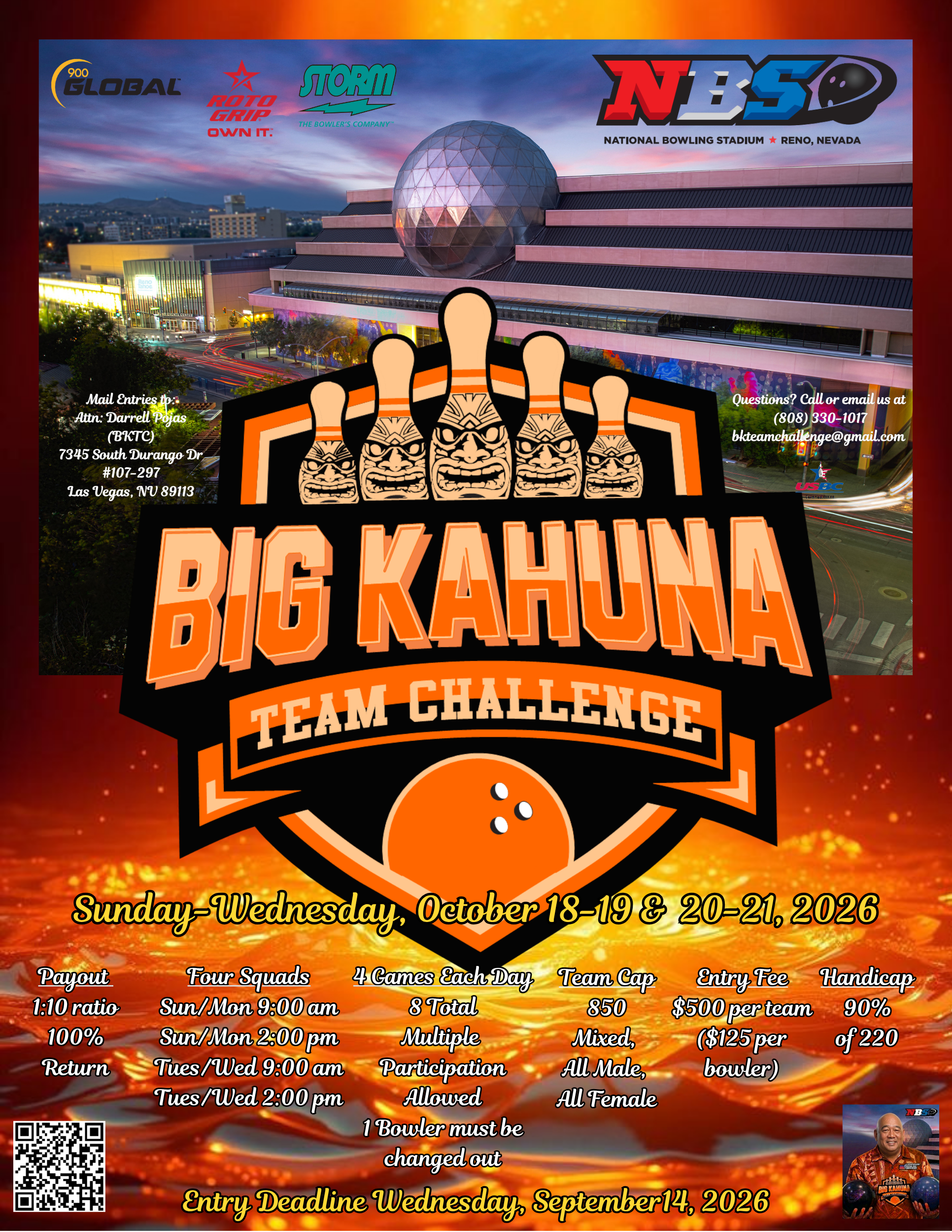 Our next BKTC will be held on October 18-21, 2026 at the historical National Bowling Center in Reno, Nevada. Complete the Entry Form in the link.